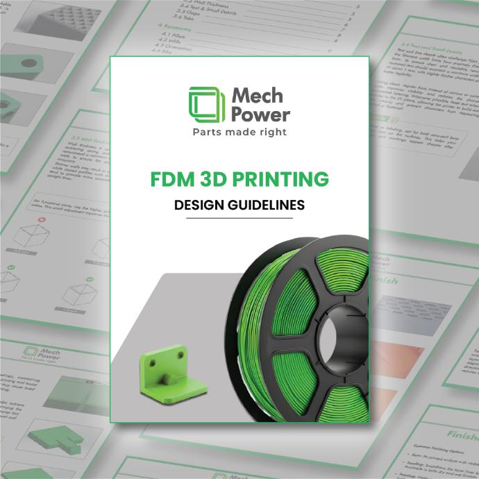 The complete FDM 3D Printing Design Guidelines are available in the Mech Power Knowledge Base for download.
