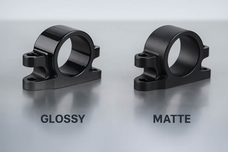 Matte is subtle and low-shine. Glossy is reflective and polished.