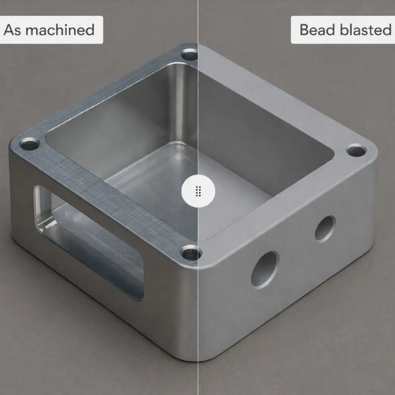Bead Blasting (Pre-Treatment) | Surface Prep | Minimizes machining marks, smooths surface before anodizing | Matte, even texture | Parts needing a clean and uniform base before anodizing |